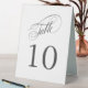 A convenient table tent sign with elegant table number and calligraphy script spelling out the word "table" with numbers that you edit for each table. This design is a versatile choice for weddings, banquets, dinners, luncheons, and parties. The neutral white and deep charcoal grey colour scheme works well with all themes. To create table numbers for each table, personalise a single sign for Table 1 and add to cart, then personalise a table sign for Table 2 and add to cart, and so on until you have a sign for each table.