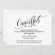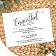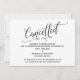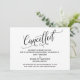 This suite's distinction is due to the elaborate, swirling script font used for accent phrases. In the event that you need to let your guests know that your wedding has been cancelled, this card provides an elegant option. In this piece, the calligraphy font was used to create a graphic depicting the word "Cancelled". (Alternate spelling is also available.) Use the template fields to add your personal details and make this design your own. The background can be changed to any colour you prefer. Please reach out with any special requests or for customising assistance. // 98 //