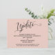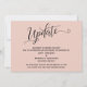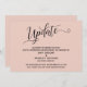 This suite's distinction is due to the elaborate, swirling script font used for accent phrases. In the event that you need to let your guests know that your wedding has been cancelled, this card provides an elegant option. In this piece, the calligraphy font was used to create a graphic depicting the word "Update". Use the template fields to add your personal details and make this design your own. The background can be changed to any colour you prefer. Please reach out with any special requests or for customising assistance. // 98 //
