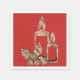 Elegant Golden Candles with Holly Red and Gold Faux Gold Foil Diamonds Faux Glitter Seasonal Winter Wedding Christmas Dinner or Cocktail or Luncheon Party Napkins