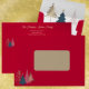 Complete your holiday greetings with this elegant Christmas envelope featuring modern gold foil holiday trees on cherry red. Designed to perfectly match our Elegant Gold Foil Holiday Card collection, this envelope adds a polished and festive finishing touch. Customise with your return address for a coordinated holiday look your friends and family will love.