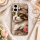Show off your love for cats with this stunning, artfully detailed phone case featuring a majestic long-haired feline with striking green eyes. Set against a soft, neutral background with a subtle floral accent, this design blends realism with a touch of elegance. The warm tones and intricate fur detailing create a cozy yet sophisticated look, making it the perfect accessory for cat lovers who appreciate both beauty and personality in their everyday essentials.