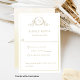 Elegant RSVP card with beautiful champagne botanical monogram with the ability to add meal choices, or, if you rather have RSVP without meal options, simply erase meal instructions and choices from text boxes to delete or add in its place a personal message to your guests (i.e. "hope you can make it, can't wait to see you there!"). A fine champagne watercolor frame on the front, while back with a delicate watercolor wash in a beautiful blend of champagne, butter cream, and golden hues. Clean, minimal, and elegant style. Monogram initials in elegant calligraphy. Also available with initials in block typography. Part of our "Champagne Cream Watercolor Botanical Monogram" Collection with a variety of coordinating products available. Visit the entire collection with this link: https://www.zazzle.com/collections/champagne_cream_watercolor_botanical_monogram-119026777554423664