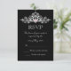 Elegant wedding RSVP card design with a highly detailed silver chandelier on a black background. This design comes on several stationery products to make a beautiful theme for all your wedding stationery.