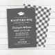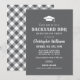 Celebrate your graduate with this charcoal grey graduation party invitation featuring bold “Backyard BBQ” typography, a graduation cap icon, and clean rustic styling. Ideal for a casual cookout, open house, or summer backyard celebration. Backside features a coordinating grey and white gingham pattern for a classic picnic vibe. Personalise with your graduate’s name and party details.