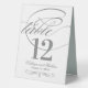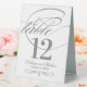 Each table number card must be customised via Personalise it" and individually added to the shopping cart. Elegant charcoal grey and white design includes a flourished monogram and calligraphy accents on the front and back sides of the card (two-sided design).