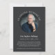 Modern memorial announcement in dark grey with white text featuring a round photo of your loved one and a tasteful wording design. In loving memory of announcement personalised with a photo. Elegant card to announce the passing of a loved one.