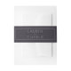 This wedding invitation belly band features a sleek, minimalist design with a centered rectangular frame. The dark charcoal background contrasts beautifully with the crisp white text, which is presented in an elegant sans-serif font for a modern and sophisticated look. Perfectly balanced with ample negative space, this design exudes understated elegance, making it ideal for formal occasions like weddings. Its clean lines and simple composition ensure that it complements any wedding theme effortlessly.