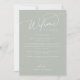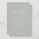 This elegant charm green wedding itinerary template is perfect for a simple wedding. The modern minimalist design features timeless pastel sage green and romantic calligraphy with bohemian fairytale style.