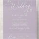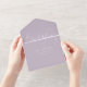 This elegant charm RSVP lavender purple wedding all in one invitation is perfect for a simple wedding. The modern minimalist design features timeless pastel lavender purple and romantic calligraphy with bohemian fairytale style, perfect for a spring or summer garden wedding.