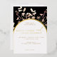The Elegant Charm Wildflower Arch Wedding Gold Foil Invitation combines delicate elements for a sophisticated look—a black background with gold foil accents. A graceful arch of wildflowers frames the text. Perfect for a tender and elegant wedding celebration