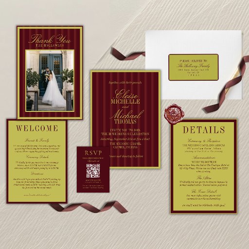Elegant Chartreuse Burgundy Stripe Formal WeddingDesigned by Molly H