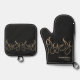 Elegant Chef Mum Flame Fire Black Gold Kitchen Oven Mitt & Pot Holder Set