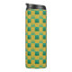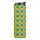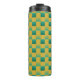 Elegant chequered pattern in green and gold thermal tumbler
