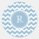 Elegant Chevron Light Aqua Green Monogram Classic Round Sticker