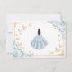 Baby blue, gold and white Quinceanera thank you card. Features brunette girl in ball gown dress, script font, gold butterflies, roses and tiara. Perfect for an elegant princess style glam celebration. Personalize with your own details.