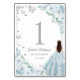Elegant Chic Baby Blue Roses Silver Quinceanera Table Number