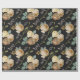 Elegant Chic Beige Roses Floral on Black Wrapping Paper