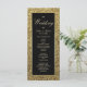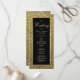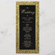 This elegant wedding program boasts a modern and luxurious design with chic black and gold glitter accents. Featuring simple calligraphy script, it blends sophistication with a touch of glamour, making it a stunning keepsake for your special day.