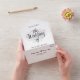 This elegant black-and-white wedding invitation is perfect for a modern wedding. The simple design features elegant black calligraphy on a clean white background.