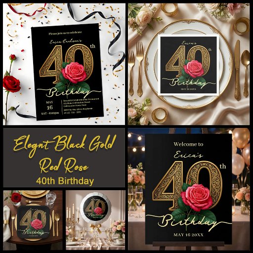Elegant Black Gold & Red Rose 40th Birthday PartyDesigned by Kristina Lj Petrovska