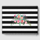 Personalised Elegant Chic Black and White Stripes Gold Accent Colour and Pink Floral Roses Wedding Guestbook