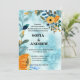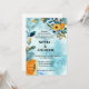The invitation features bright flowers in shades of blue and orange with an attractive background,