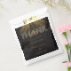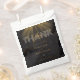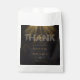 This stunning wedding thank you bag features bold, modern typography with a striking digital gold effect on the the word "you". The word "Thank" dazzles with a captivating digital diamond effect, adding an extra touch of luxury. Set against a sleek black background, this design exudes elegance and sophistication, perfect for couples seeking a classy, contemporary style that stands out. Ideal for a glamourous, upscale celebration!