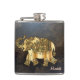 Elegant Chic Gold Elephant Floral, Leather Look Hip Flask