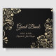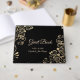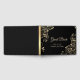 Elegant chic gold flowers on black background wedding guest book .
