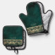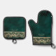 Elegant Chic Gold Swirls Green Oven Mitt & Pot Holder Set
