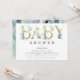 Elegant Chic Gold Teal Blue Flowers Baby Shower Invitation