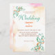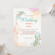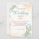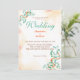 The design features light orange watercolor splashes and simulated flecks. The design also features contains eucalyptus branches and other light orange elements in shades of dark orange, and more to fit all seasons that your wedding may fall within and colours that compliment the colour blush. The back of the invitation has a beautiful bride and groom's monogram.