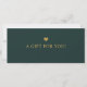 Modern minimalist business gift certificate featuring your custom logo, business name, and message in a clean green and gold design. Perfect for small business owners, salons, spas, boutiques, or corporate gifting. Personalise with your own text and company branding. A simple, professional way to offer gifts, promotions, or store credit. Elegant and custom-made to match your unique brand style. Great for holidays, birthdays, thank you gifts, or special events.