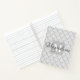 This beautiful chic spiral notebook features a classic white damask pattern over a grey background. The design is personalised with a monogram initial letter as well as a customisable name. Perfect for work, school, or any girl or woman who wants a pretty notebook with a simple yet elegant feminine style.