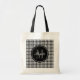 Elegant chic houndstooth pattern monogram tote bag. Cute dog / hounds tooth check print design with personalised monogrammed name. Stylish script typography with custom initial letter. Black and white colours customisable. Great for bridesmaids at bridal / wedding party.