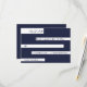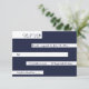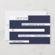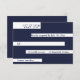 This elegant navy blue and white RSVP card is perfect for a modern wedding. the simple design features elegant blue calligraphy on white stripes on a navy blue background.