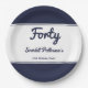 Elegant Chic Navy Blue White Modern 40th Birthday Paper Plate