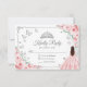 Pink silver and white Quinceanera RSVP reply card. Features brunette girl in ball gown dress, script font, silver butterflies, pink blush roses and tiara. Perfect for an elegant princess style glam celebration. Personalize with your own details.