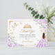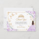 Purple lilac, gold and white Quinceanera thank you card. Features brunette girl in ball gown dress, script font, gold butterflies, roses and tiara. Perfect for an elegant princess style glam celebration. Personalize with your own details.