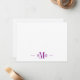 An elegant modern trendy style purple 3 initial monogram note card in purple typography on white.