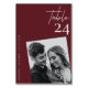 Celebrate your special day with our enchanting Elegant Chic Red Plum Burgundy Wedding Photo Table Number. This beautifully designed table number adds a touch of personalised elegance to your wedding decor, combining the rich allure of red plum burgundy with modern romance.
