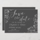 Elegant chic silver flowers on grey background. Beautifully save the date that can be customised with your name.Select the "customise" button to change the font style,colour and size.