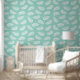 Elegant Chic Soft Blue Green Feathers Pattern Wallpaper