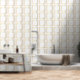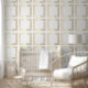 Stylish, elegant and glamourous white and gold wallpaper featuring sizeable shiny gold squares intricately linked to produce a tiles effect.