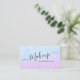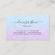 Pretty business card design featuring faux aqua and violet glitter texture and elegant calligraphy font.