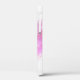 Girly iPhone case with pink and purple faux glitter, white marble background.