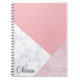 Modern and feminine geometric design featuring faux white marble, pink marble and blush pink triangles.