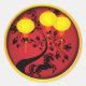 Celebrate the Chinese New Year with a this elegant design featuring a red background and a gold circle with gold lanterns, a tree silhouette and horse.