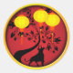 Celebrate the Chinese New Year with a this elegant design featuring a red background and a gold circle with gold lanterns, a tree silhouette and an ox.